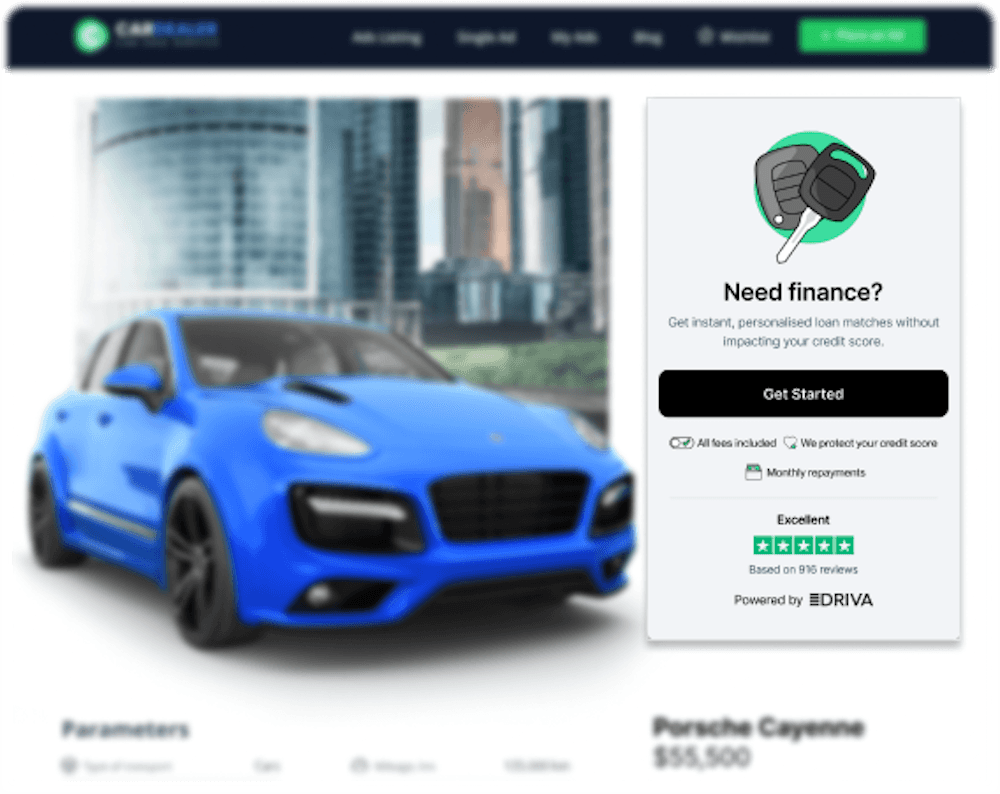 Seamlessly incorporate Driva on your site for quick personalised vehicle or personal loans.