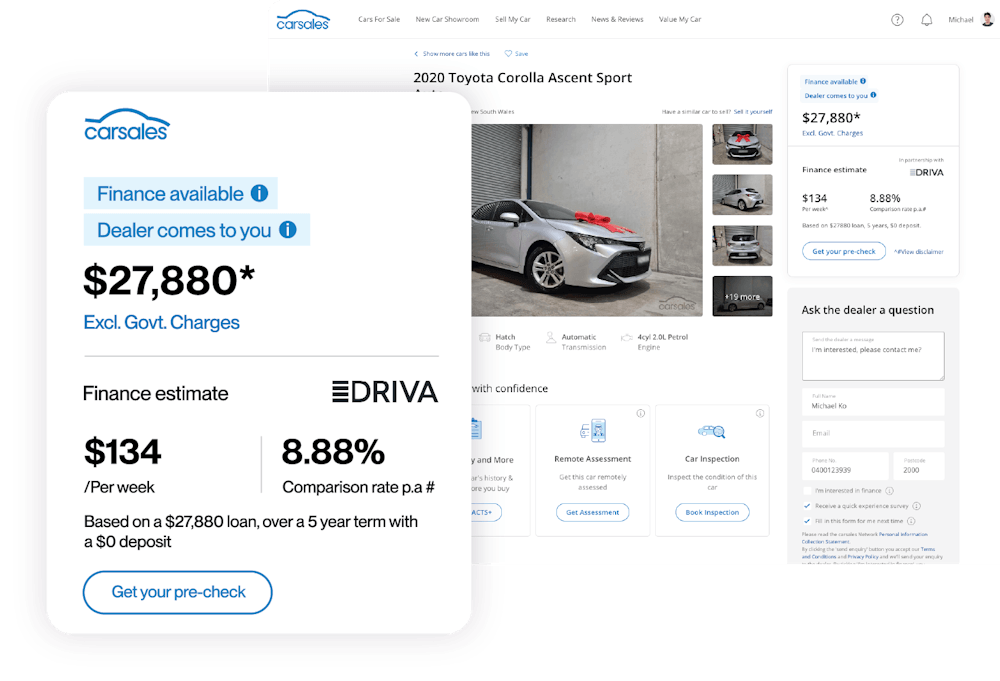 Seamlessly incorporate Driva on your site for quick personalised vehicle or personal loans.